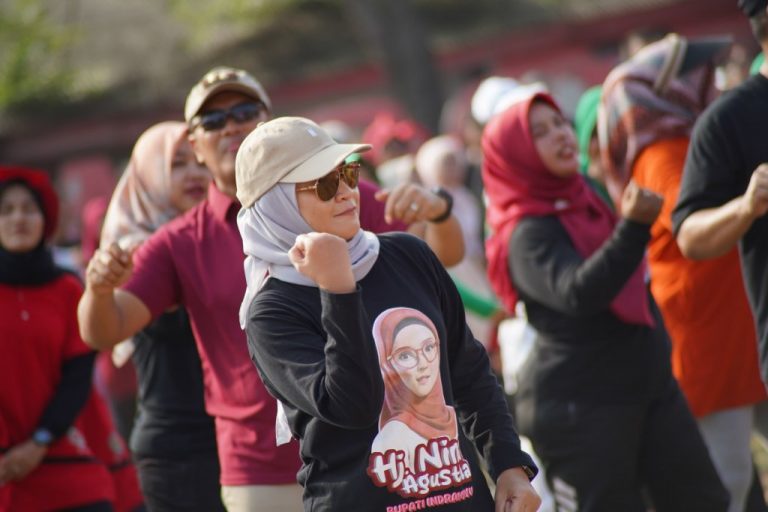 BeritanyaInfo, Indramayu – Ribuan masyarakat dari wilayah barat Indramayu memadati Lapangan Kujang Desa Patrol untuk mengikuti Senam Sehat Bermartabat bersama Bupati Indramayu Nina Agustina, Jum’at (26/7/2024).