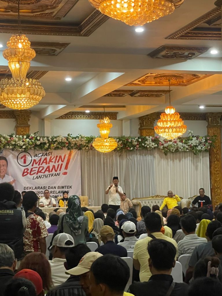 “yang menjadi sorotan adalah ketika acara selesai, panitia dan tim pemenangan diduga membagikan apk berupa banner bergambar paslon no 1, dan juga amplop yang diduga berisi uang tunai 100 rb rupiah di dalam nya.