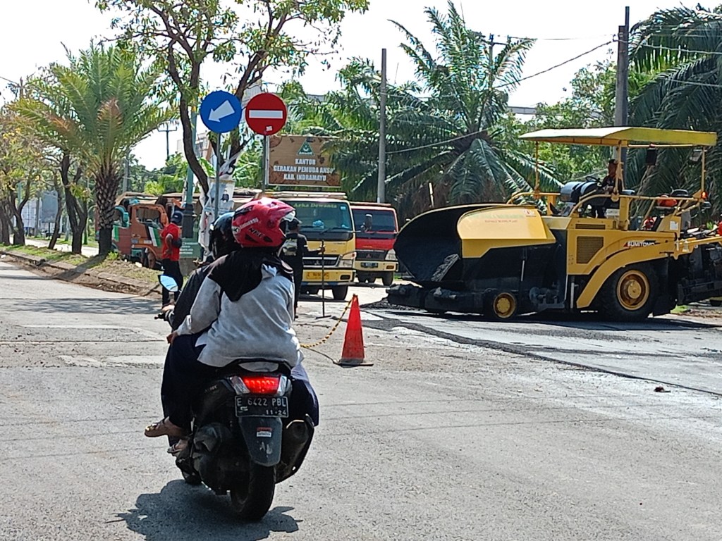 BeritanyaInfo, Indramayu – Dinas Pekerjaan Umum dan Penataan Ruang (PUPR) sedang melaksanakan Pengaspalan di Jalan Gatot Subroto, Rabu 06/11/2024.