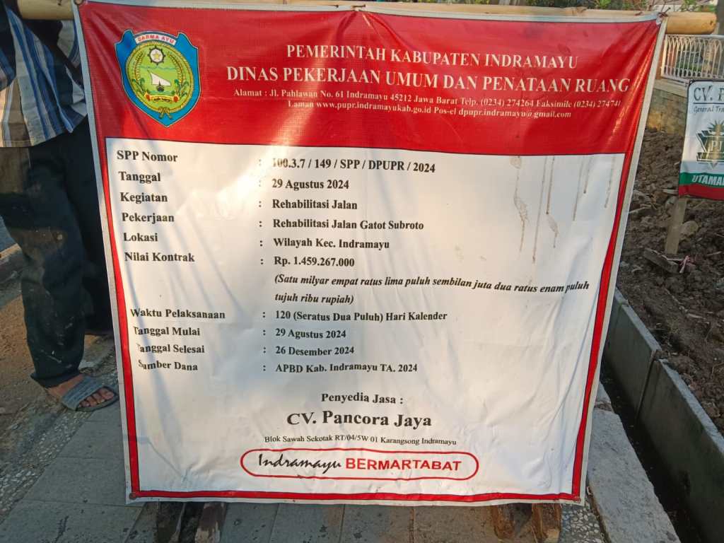 Pengaspalan atau Rehabilitasi Jalan Gatot Subroto ini dilaksanakan dengan anggaran 1.459.267.000 dari APBD Kab. Indramayu TA. 2024.