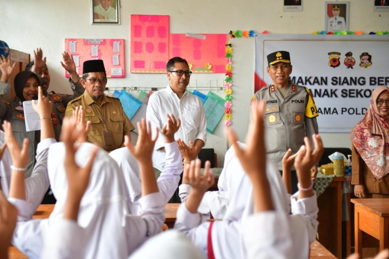 BeritanyaInfo, Indramayu – Kepala Kepolisian Daerah (Kapolda) Jawa Barat (Jabar) Irjen Pol. Dr. Akhmad Wiyagus, S.I.K., M.Si., M.M., didampingi Pjs. Bupati Indramayu Dr. H. Dedi Taufik, M.Si., dan Kapolres Indramayu AKBP Ari Setyawan Wibowo, yang sedang melaksanakan kunjungan kerja di Kabupaten Indramayu, Mampir ke SDN Tamansari untuk meninjau kegiatan makan siang bergizi.