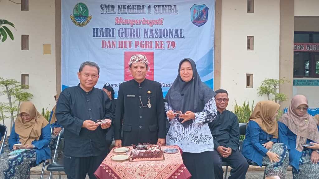 BeritanyaInfo, Indramayu – Dalam rangka memperingati Hari Guru Nasional (HGN), keluarga Besar SMAN 1 Sukra memotong bolu dan saling bertukar kado antar Guru. Dalam acara tersebut ditampilkan juga kreasi seni dari siswa-siswi SMAN 1 Sukra yang begitu sederhana namun bermakna pada Senin, 25/11/2024.