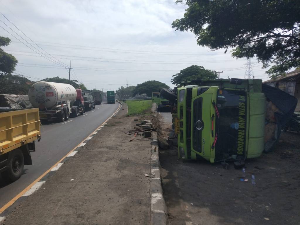 Kecelakaan terjadi saat trailer yang dikemudikan Supedu (43), warga Serang, Banten, melaju dari arah Cirebon menuju Jakarta. Berdasarkan keterangan pihak kepolisian, penyebab kecelakaan diduga akibat pengemudi mengantuk, sehingga kendaraan kehilangan kendali dan menabrak trotoar. Benturan keras mengakibatkan trailer terbalik dan menutup sebagian badan jalan, mengganggu arus lalu lintas di jalur Pantura.