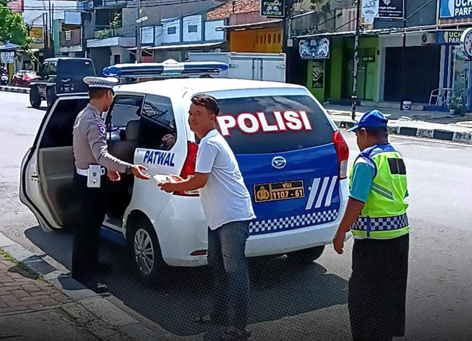 Personel Satlantas Polres Majalengka berkumpul di beberapa titik di Jln.raya Kh.Abdul Halim Kabupaten Majalengka.