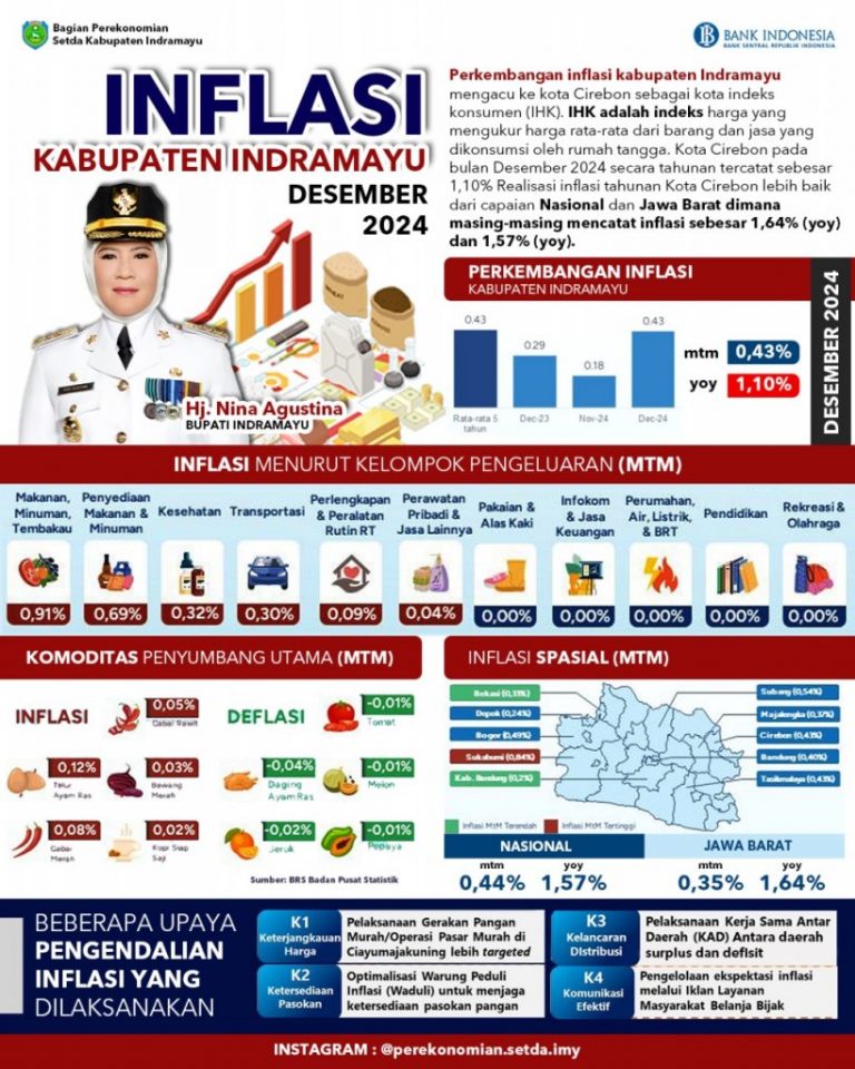Walaupun begitu, sepanjang 2024 Kabupaten Indramayu ujar Suwenda terus melaksanakan berbagai langkah pengendalian inflasi sehingga angka inflasi dapat terus terjaga sesuai dengan arahan pemerintah pusat.