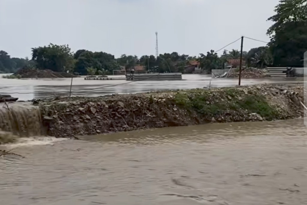 “Ini luapan Sungai Cimanuk bukan karena hujan, tadi malam di sini tidak habis hujan,” ujar dia.