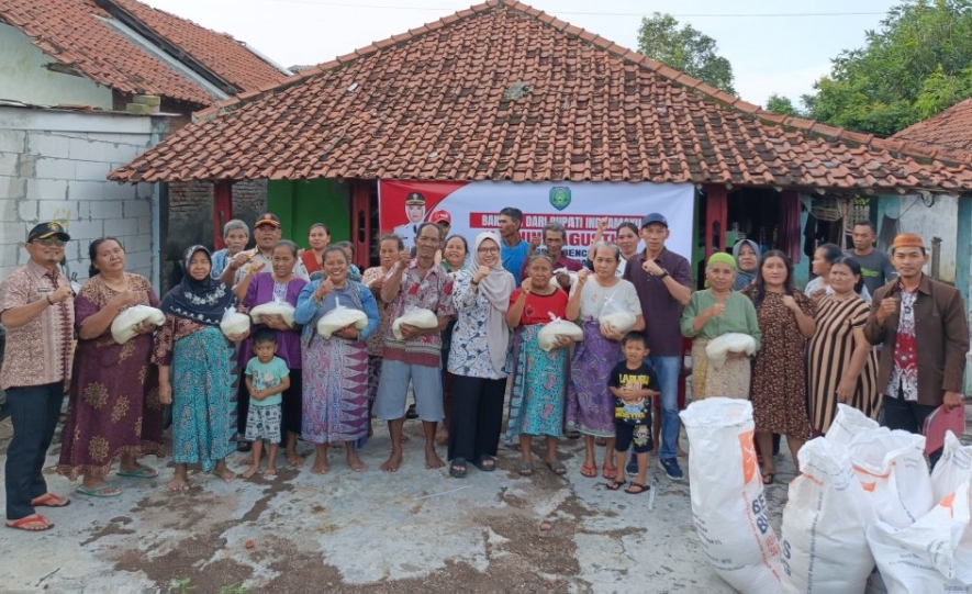 Bantuan beras dari Bupati Indramayu Hj. Nina Agustina didistribusikan Camat Pasekan, Dedeh Nurjanah, Kamis (30/1/2025) di Blok Koncong dan Blok Bondol Desa Pasekan.