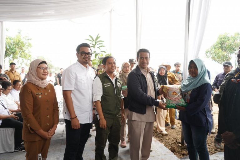 BeritanyaInfo, Indramayu – Kementerian Kehutanan berkolaborasi dengan Kementerian Pertanian serta Perum Perhutani melaksanakan Penanaman Serentak Agroforestry Pangan dengan mengintegrasikan tanaman Padi Lahan Kering dengan Tanaman Serbaguna (Multi-Purpose Tree Species/MPTS) dengan pola agroforestry, di Areal Desa Cikawung, Kecamatan Terisi, Kabupaten Indramayu, Selasa (4/2/2024).