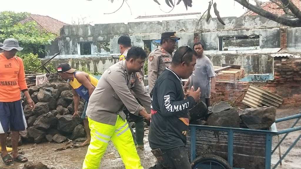 Polres Indramayu melalui Polsek Kandanghaur bersama masyarakat dan Paksi melakukan kegiatan pemantauan lokasi jebol dan hancur akibat gempuran ombak yang terjadi mulai dari pukul 03.00 Wib pagi tadi.