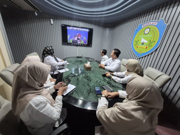 Plt. Kepala Dinas Pengendalian Penduduk, Keluarga Berencana, Pemberdayaan Perempuan dan Perlindungan Anak (Disduk-P3A) Kabupaten Indramayu, Cicih Sukarsih, dan Plt. Kepala Dinas Komunikasi dan Informatika (Diskominfo) Kabupaten Indramayu yang diwakili Kepala Bidang Informasi dan Komunikasi Publik (IKP) Diskominfo Indramayu, Agus Muttaqien, mengikuti acara deklarasi secara daring dari ruang Indramayu Command Center.