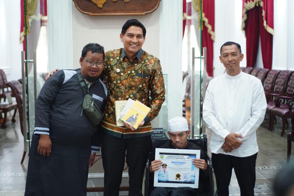Penghargaan kali ini diberikan kepada Muhammad Dewana Fahrizal seorang disabilitas warga Kecamatan Indramayu yang telah melahirkan karya-karya tulis dalam bentuk buku. Penghargaan diserahkan Bupati Lucky Hakim di Pendopo Indramayu, Minggu (23/3/2025).
