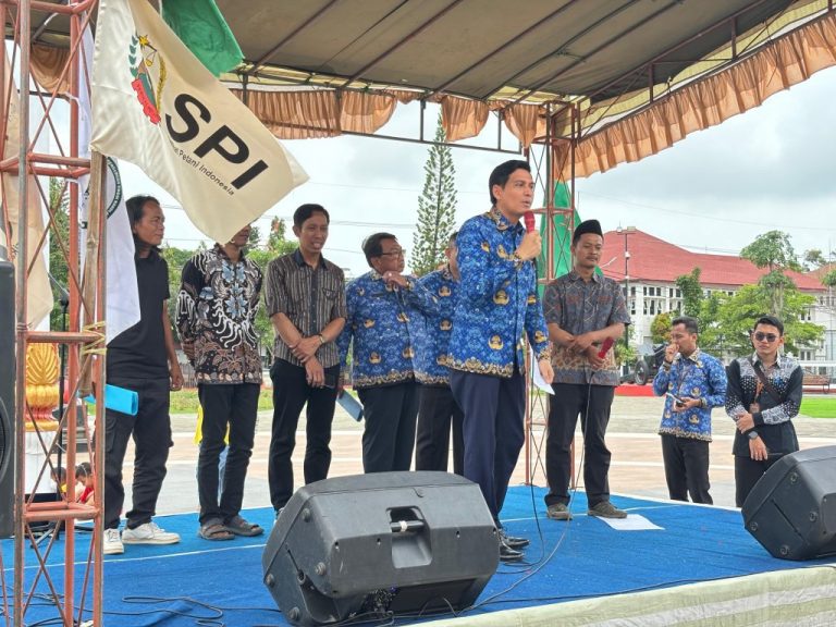 BeritanyaInfo, Indramayu – Bertempat di Alun-Alun Indramayu, Bupati Indramayu, Lucky Hakim menghadiri dan memberikan orasi politik dalam kegiatan Refleksi Hari Perjuangan Petani Internasional yang dilaksanakan pada Kamis, (17/4/2025).