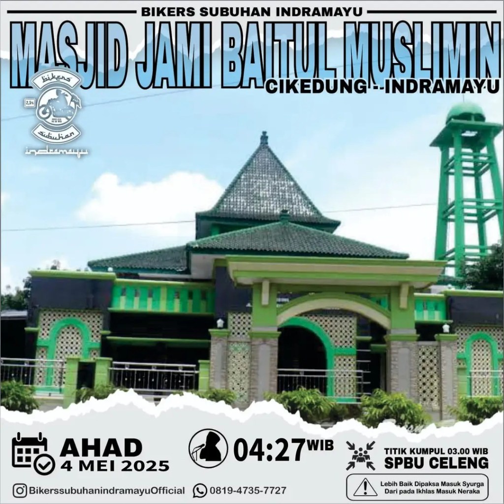BeritanyaInfo, Indramayu – Agenda “Bikers Subuhan” Indramayu kali ini di masjid Jami Baitul Muslimin tepatnya didaerah Cikedung pada Ahad 4 Mei 2025.
