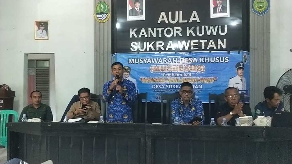BeritanyaInfo, Indramayu – Musyawarah Desa Khusus (MUDESUS) membahas pembentukan Koperasi Merah Putih dilaksanakan di Aula Balai Desa Sukra Wetan Kecamatan Sukra Kabupaten Indramayu Senin, 20/05/2025.