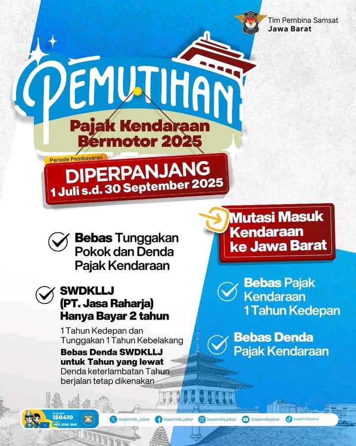 BeritanyaInfo, Haurgeulis -Program Pemutihan Pajak Kendaraan Bermotor 2025 di Jawa Barat diperpanjang hingga 30 September 2025.