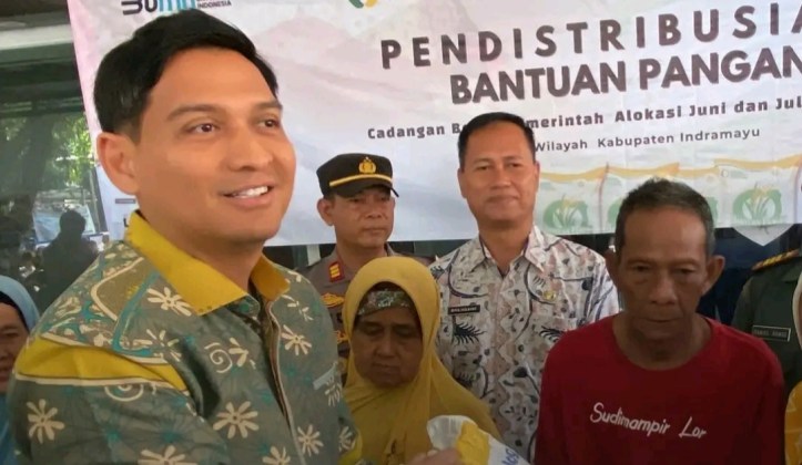 Bupati Indramayu, Lucky Hakim pun meninjau langsung proses penyaluran bersama Perum Bulog di Desa Sudirmampir, Kecamatan Balongan, Kamis (24/7/2025).