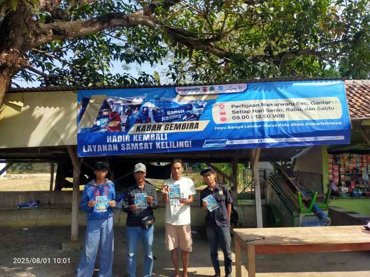 Pada hari ini Senin Tanggal 4 Agustus 2025 telah ada layanan Samsat keliling, adapun jadwal untuk pelayanan Samsat keliling yaitu hari Senin, Rabu dan Sabtu pukul 09.00 sampai pukul 12.00 WIB.