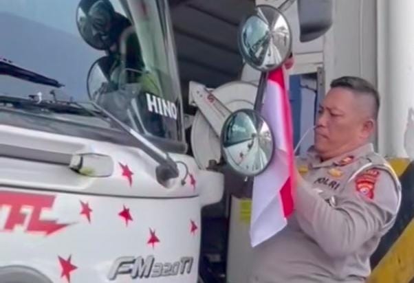 Jelang rayakan Hari Ulang Tahun Republik Indonesia yang Ke – 80, Kasat Lantas Polres Tasikmalaya Kota bagikan bendera merah putih juga pasangkan sendiri ke beberapa kendaraan yang melintas daerah sekitar, juga sedikit edukasi tanamkan rasa nasionalisme akan rasa cinta terhadap tanah air.