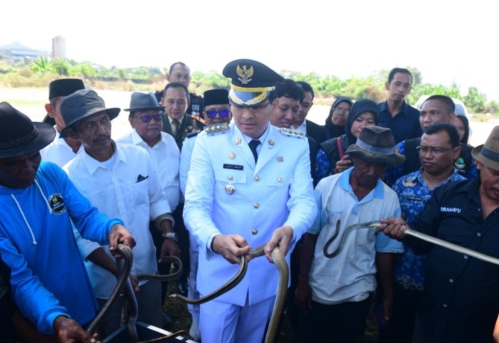 BeritanyaInfo, Indramayu – Bupati Indramayu Lucky Hakim kembali melepaskan ratusan ular di areal pesawahan di wilayah Kabupaten Indramayu. Pelepasan ini sebagai upaya untuk menekan laju pertumbuhan tikus yang selama ini menjadi musuh para petani.