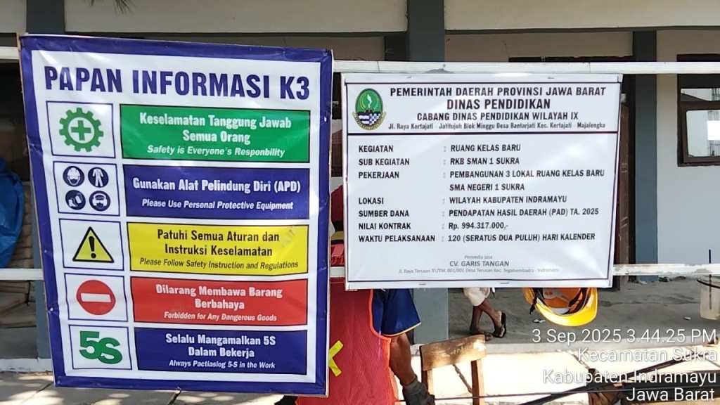 BeritanyaInfo, Indramayu – Pelaksanaan pembangunan Ruang Kelas Baru (RKB) SMA Negri 1 Sukra diduga banyak melakukan kesalahan dalam pelaksanaannya pada Senin,(22/09/2025).