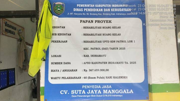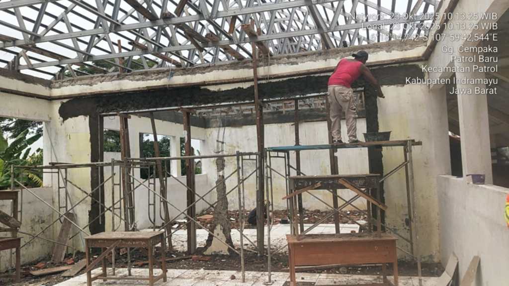 BeritanyaInfo, Indramayu – Pembangunan Rehabilitasi Ruang Kelas UPTD SDN 1 Patrol Lor diduga dilakukan pengerjaannya dengan asal-asalan pada, Jumat 24/10/2025.