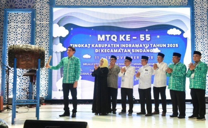 BeritanyaInfo, Indramayu – Gemuruh lantunan ayat suci Al-Qur’an menggema di Kecamatan Sindang, menandai dibukanya Musabaqah Tilawatil Qur’an (MTQ) ke-55 Tingkat Kabupaten Indramayu Tahun 2025, Selasa malam (11/11/2025).