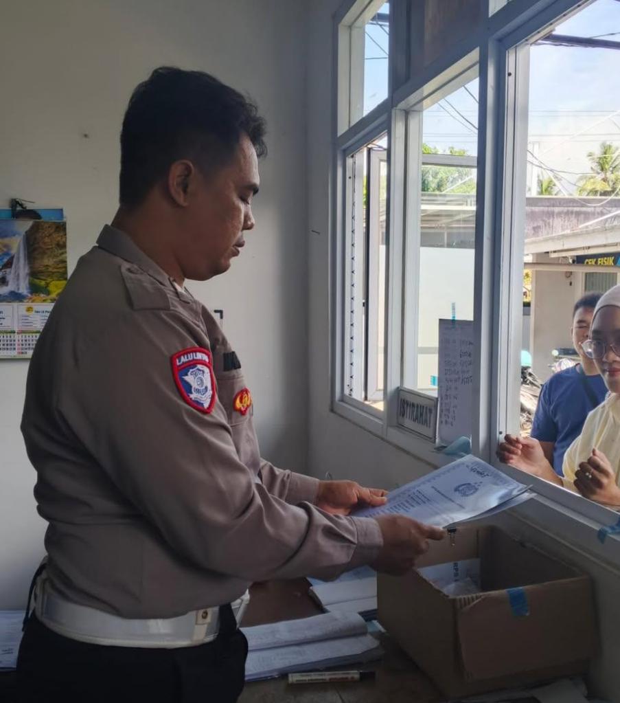 Petugas memeriksa setiap berkas persyaratan administrasi secara teliti guna memastikan kelengkapan data kendaraan.