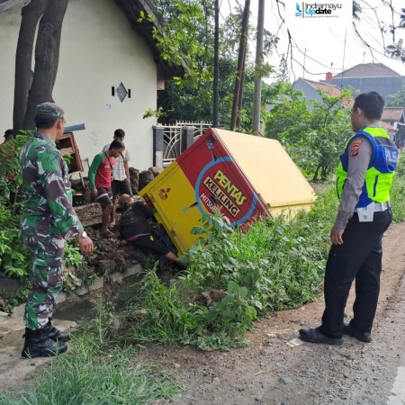 Mobil Box Oleng Terperosok ke Parit