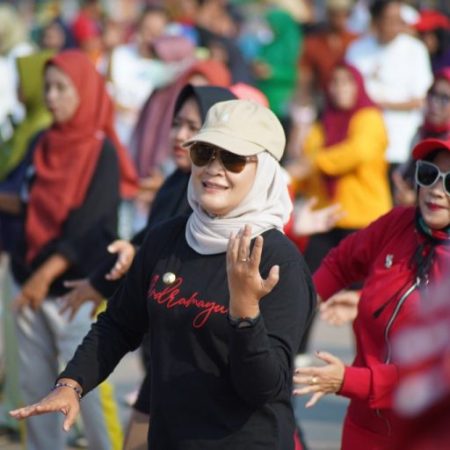 Bupati Nina Agustina Senam Bersama Warga Koperasi dan UMKM
