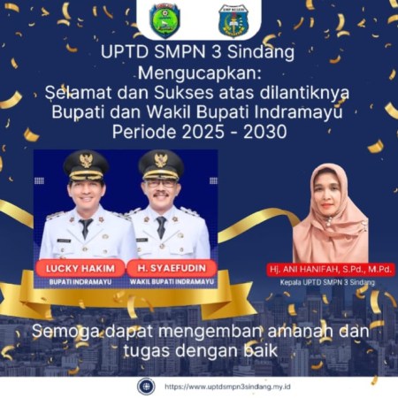 KELUARGA BESAR UPTD SMPN 3 SINDANG MENGUCAPKAN “SELAMAT ATAS PELANTIKAN BUPATI DAN WAKIL BUPATI KABUPATEN INDRAMAYU”