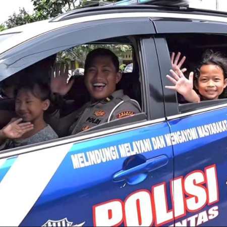 Kereennn!!, Sat Lantas Polres Karawang Terjun Langsung Giat Trauma Healing Bagi Korban Banjir