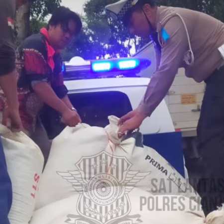 13.02.2025 redberitanyainfoid Kerennn!! Respon Cepat Satlantas Polres Cianjur, Tangani Tumpahan Oli Dijalan