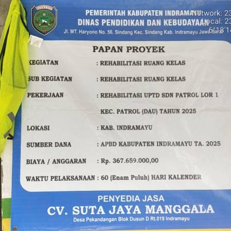 Waduhhh!!! CV. SUTA JAYA MANGGALA diduga Asal-asalan dalam Pengerjaan Rehabilitasi Ruang Kelas UPTD SDN 1 Patrol Lor
