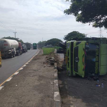 Diduga Sopir Mengantuk, Trailer Menghantam Pembatas dan Terguling